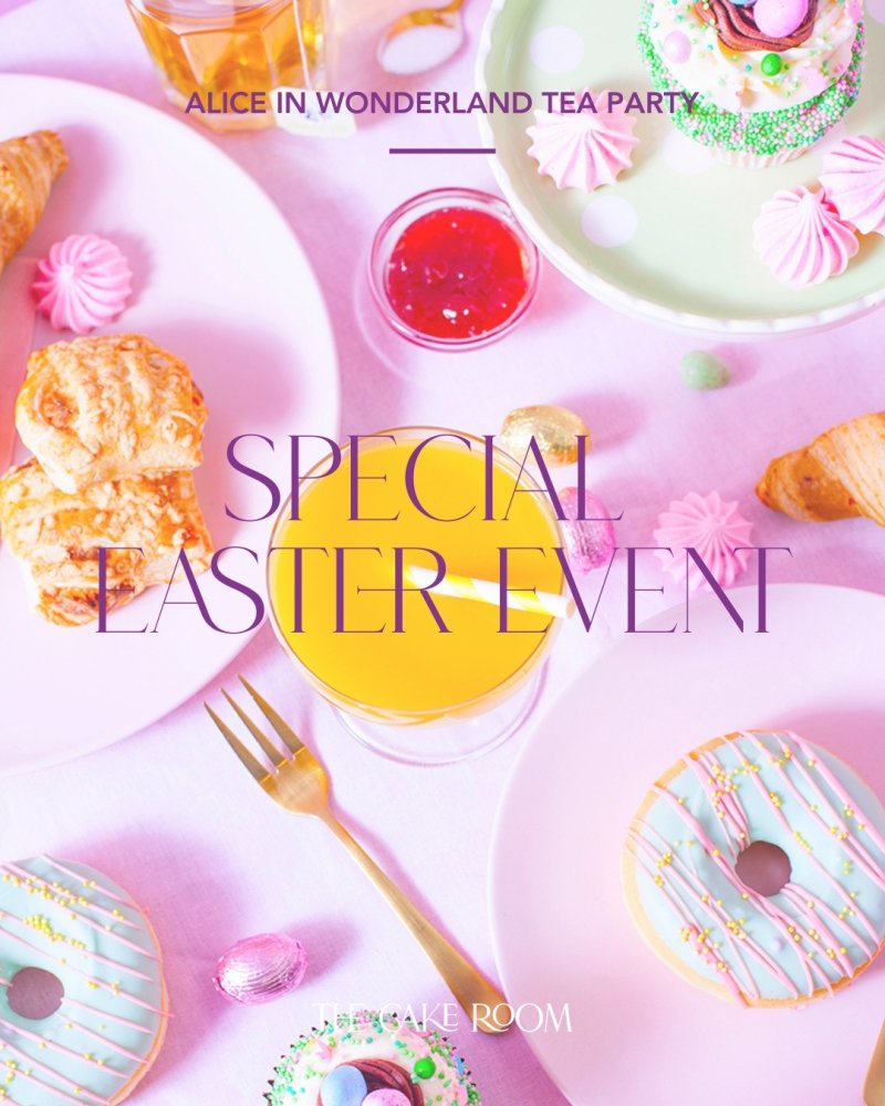 Vier Eerste Paasdag op een bijzondere manier bij The Cake Room tijdens de Alice in Wonderland Tea Party. Een magische ochtend speciaal voor het hele gezin.