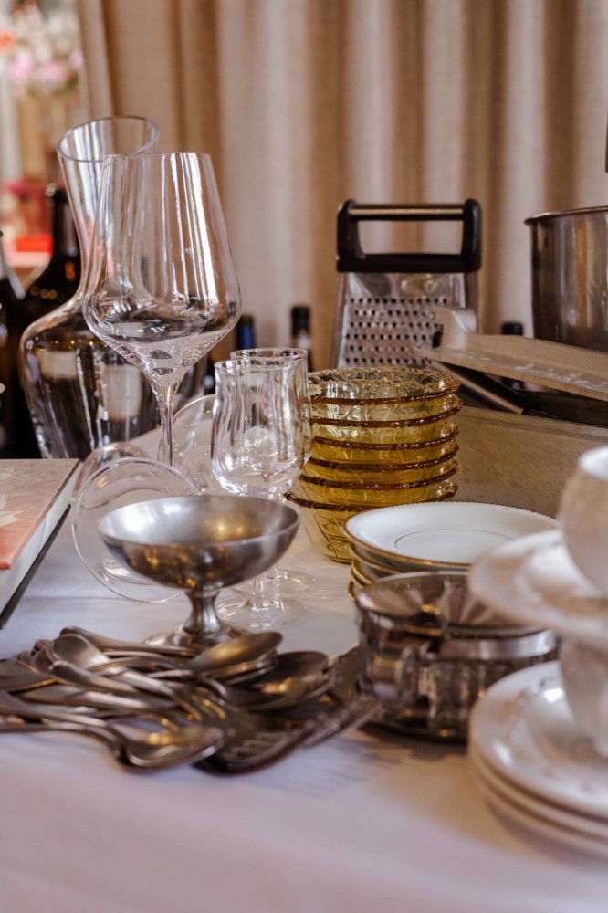 Tijdens de markt verkopen wij samen met een aantal andere onze niet gebruikte keuken materialen, kookboeken, serviesgoed en glaswerk. Tijdens de markt kun je ook genieten van een glaasje van onze kelder restanten en koken onze chef een paar lekkere hapjes om ook de innerlijke koopjesjager tevreden te stellen!