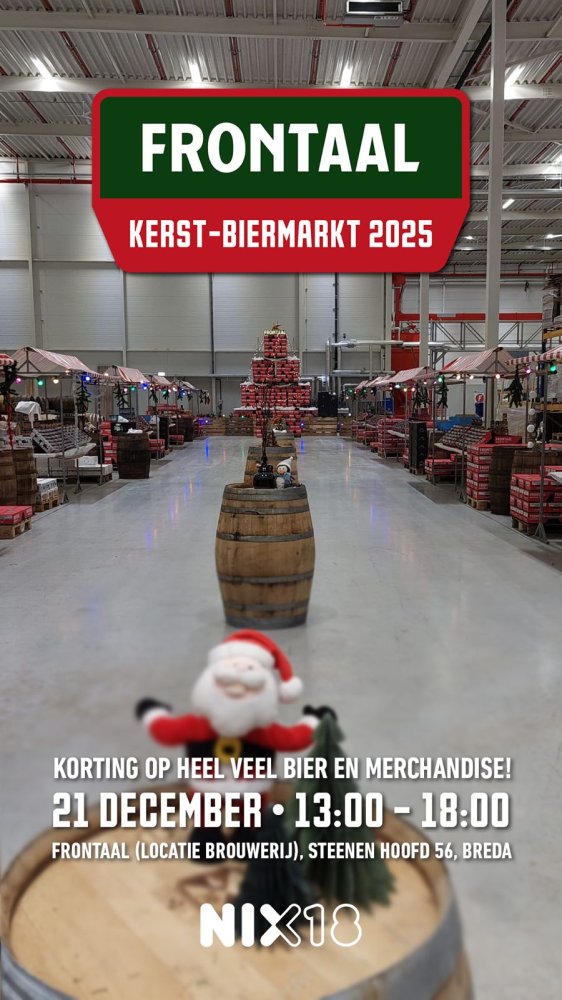 Frontaal Brewing Company opent op 21 december 2025 voor de derde keer haar deuren om met alle bierliefhebbers kerst te vieren. Dit doet de Bredase bierbrouwer door middel van een Kerst-Biermarkt midden in de brouwerij, waar je rechtstreeks aan de bron bier kan inkopen voor de feestdagen. Lees verder