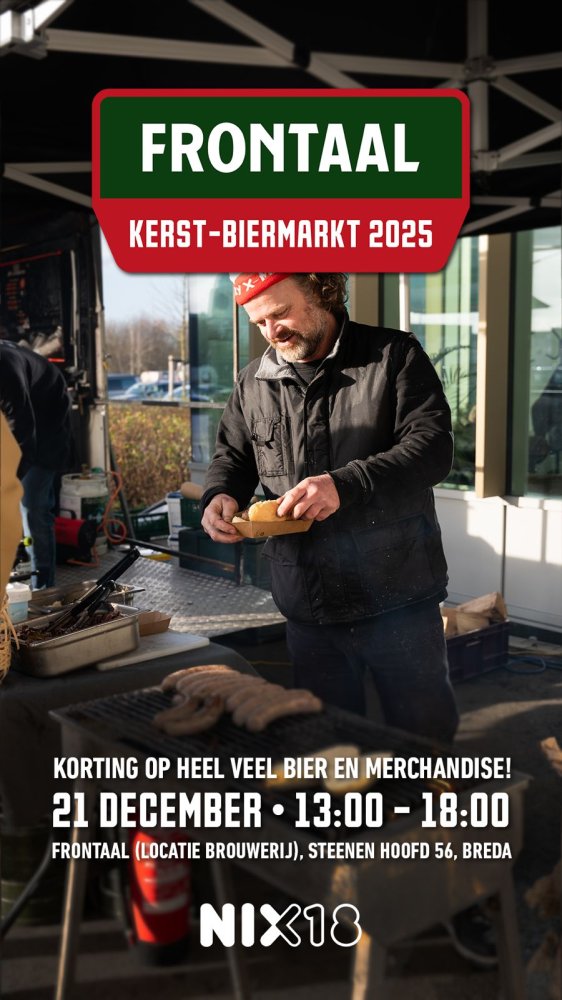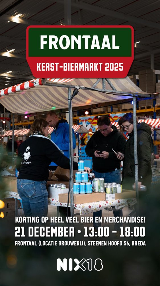 Frontaal Brewing Company opent op 21 december 2025 voor de derde keer haar deuren om met alle bierliefhebbers kerst te vieren. Dit doet de Bredase bierbrouwer door middel van een Kerst-Biermarkt midden in de brouwerij, waar je rechtstreeks aan de bron bier kan inkopen voor de feestdagen.