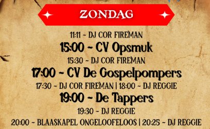 20:00 - Blaaskapel Ongeloofeloos | 20:25 DJ Reggie