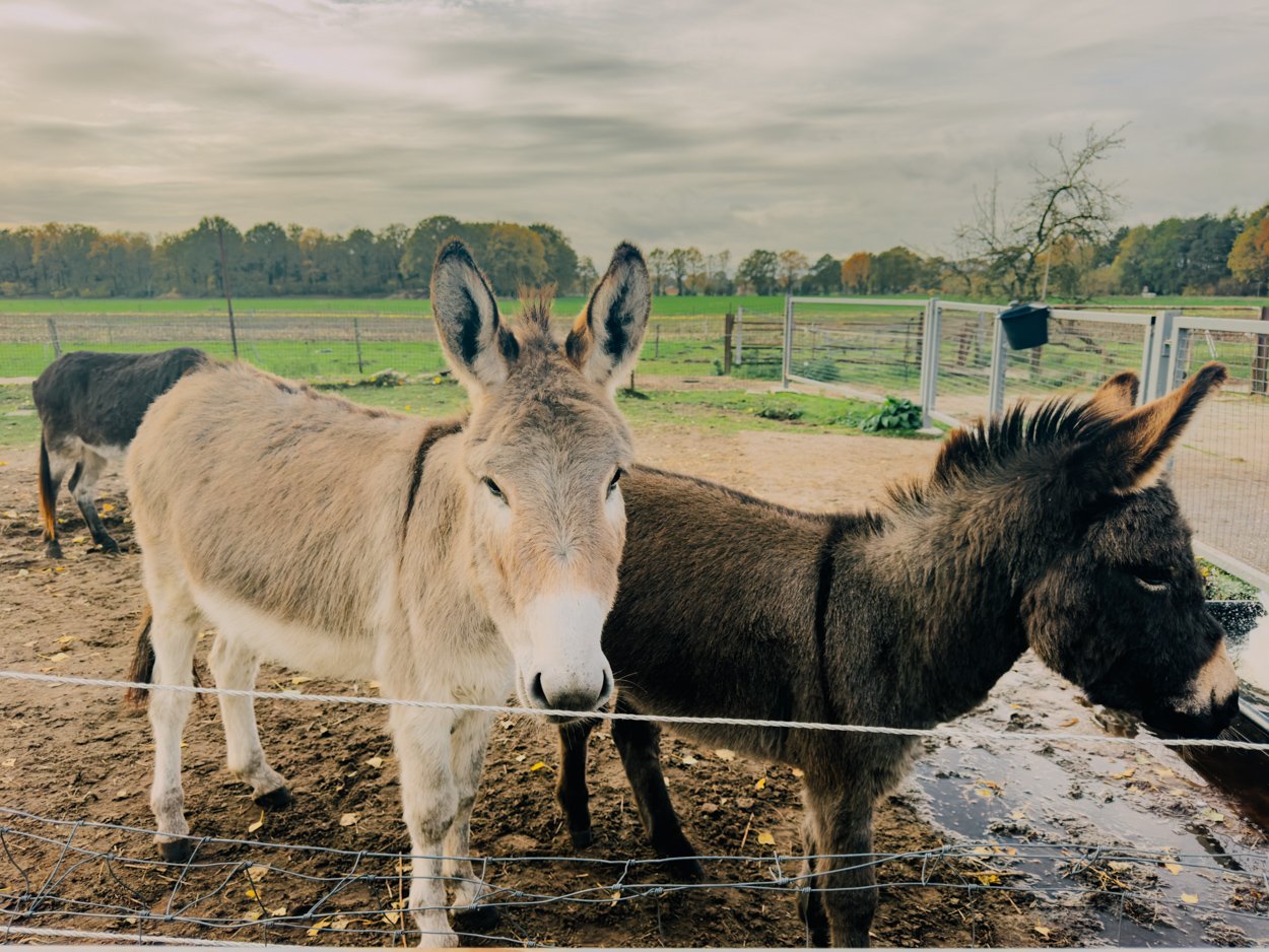 Ezels knuffelen en borstelen