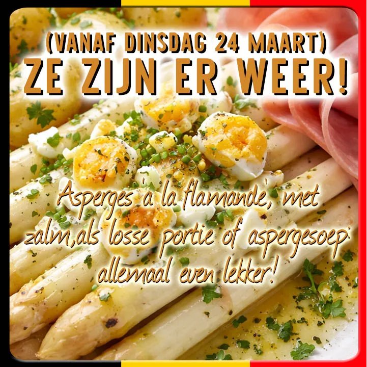 Zeker zijn van een plekske en lekkere asperges???