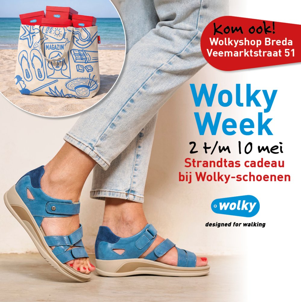 Van 2 t/m 10 mei is het Wolky Week! En dat betekent: extra leuk shoppen. Of je nu online shopt of binnenloopt bij de Wolkyshop in de Veemarktstraat ... bij jouw nieuwe Wolky's ontvang je nu een cadeau. Je krijgt een grote strandtas (t.w.v. €14,95) bij je aankoop.