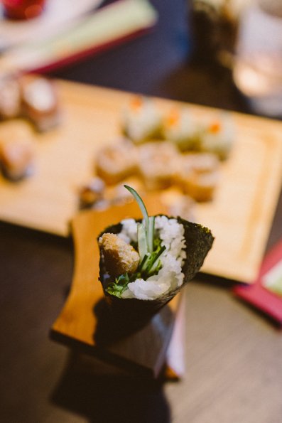 We besloten achterin de zaak plaats te nemen in een van de loungehoeken. Al snel werden we geholpen en kregen we een zomerse cocktail aangeboden. Het voorste gedeelte van de bar is volledig ingericht voor cocktails, liefhebbers kunnen hier ook alleen voor een cocktail terecht. Voor de lekkere trek kun je de à la carte gerechten bestellen. Aanraders zijn bijvoorbeeld de licht gegrilde tonijn, coquilles of een sashimi mix. Als je gaat voor het all-you-can-eat concept kun je zelf de gerechten aanstrepen, wij besloten ons te laten verrassen. De eerste ronde bestond uit allerlei verschillende soorten sushi en sashimi, welke mooi werden gepresenteerd op houten planken. De sushi was goed van smaak en naast de klassiekers zaten er ook een aantal verrassingen voor ons bij. Zo waren er bijvoorbeeld een aantal rollen met witvis, pikante kip en zelfs fruit. Bekijk onderaan dit artikel de volledige menukaart of download gratis de Breda City App!