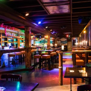 Er is een podium, een DJ booth en licht / geluid aanwezig.