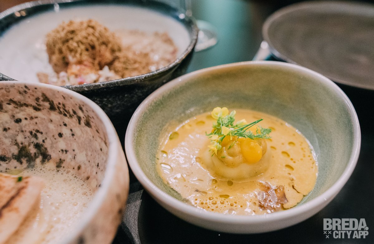Erg benieuwd zijn we naar de ravioli van pompoen en feta, met vinaigrette van macadamia en schuimige saus van curry. Het is algemeen bekend dat de combinatie van kaas en noten erg goed is, maar bij dit gerecht vult het elkaar echt heel mooi aan. De zachte texturen vallen zeker in de smaak!