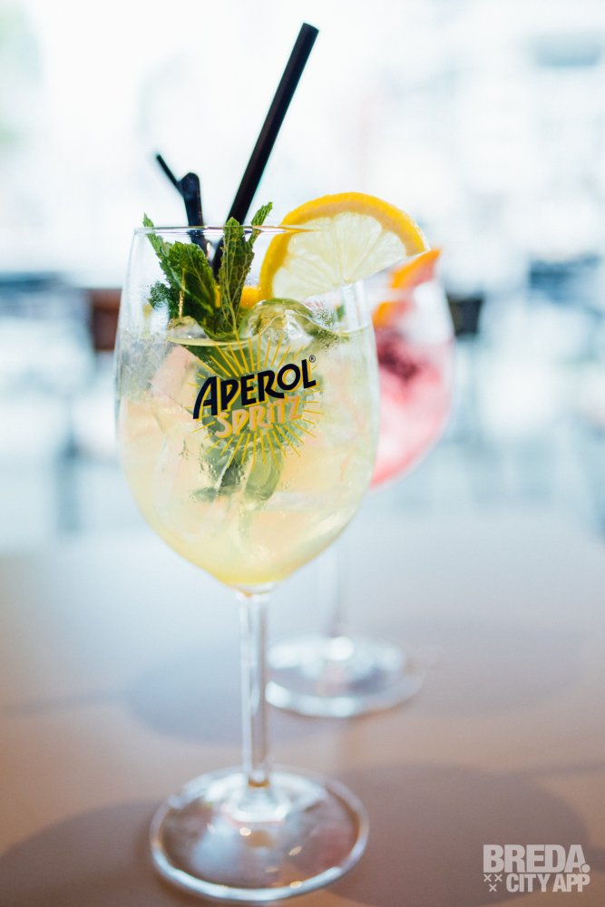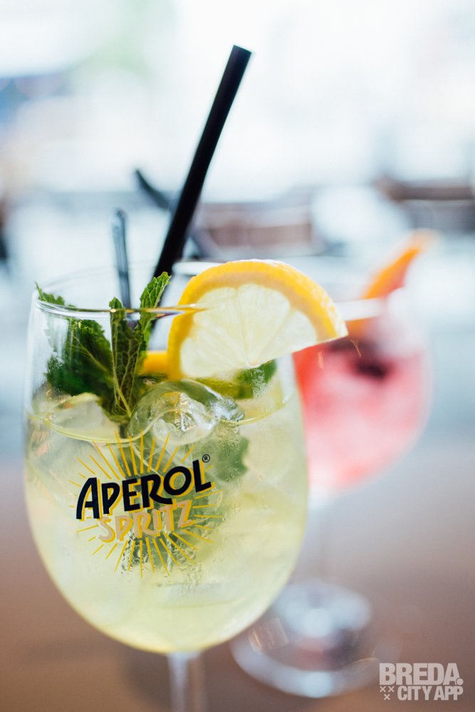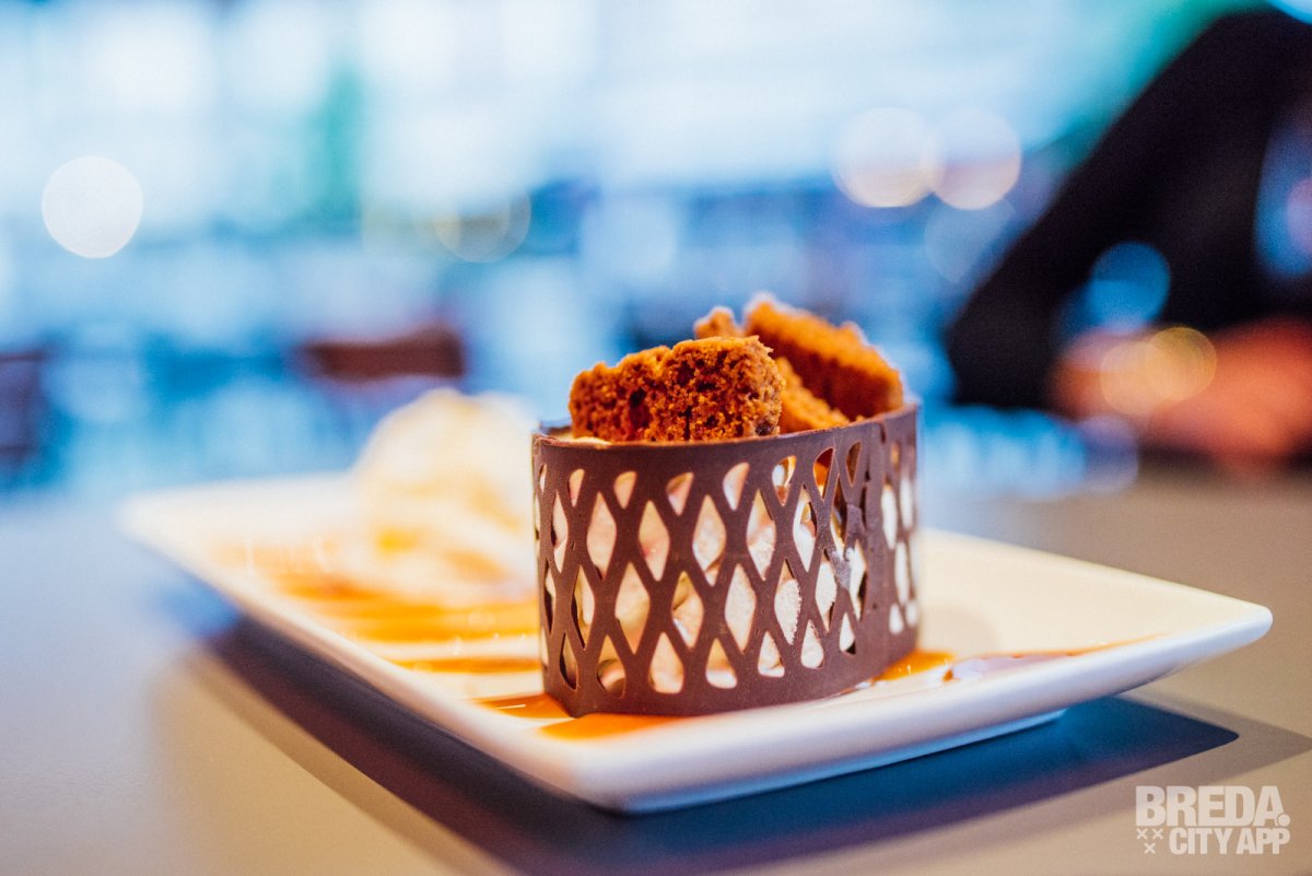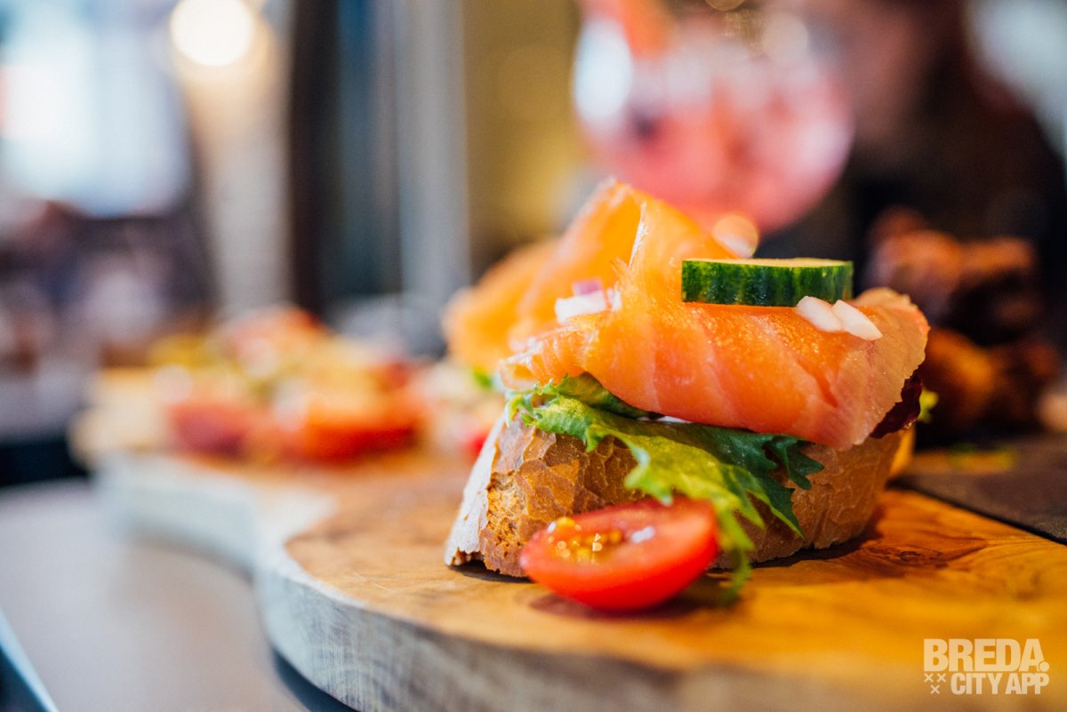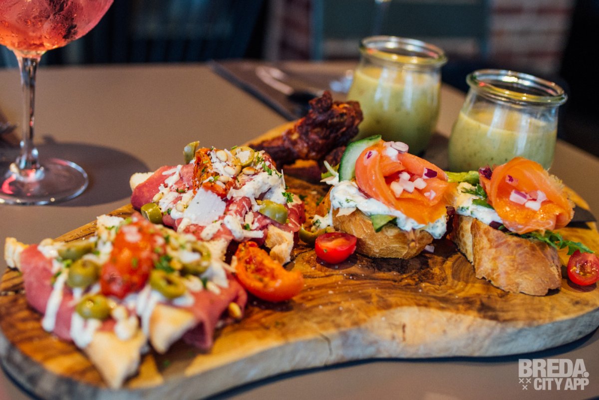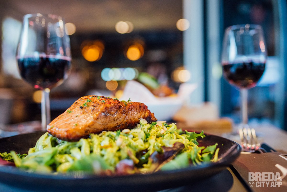 Het restaurant beschikt over een splinternieuw, modern terras waar je buiten in de zon kunt zitten. Waait het? Dan kunnen de zijkanten van het terras dicht, zodat je daar geen last van hebt. Is het een beetje fris? Dan kunnen de warmtelampen aan. Vandaag is het niet warm buiten en helaas een regenachtige dag, dus we nemen plaats aan een tafeltje onder de luifel. Door de warmtelampen hebben we nergens last van en genieten we van het uitzicht op Van Coothplein en het begin van de winkelstraat van Breda.