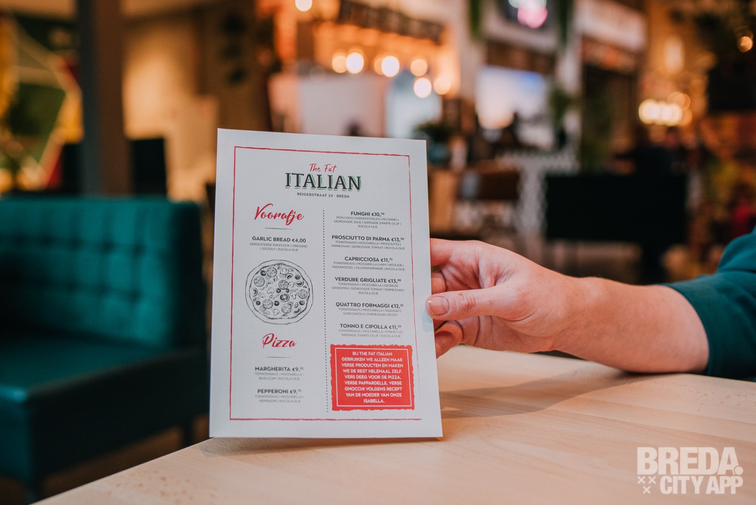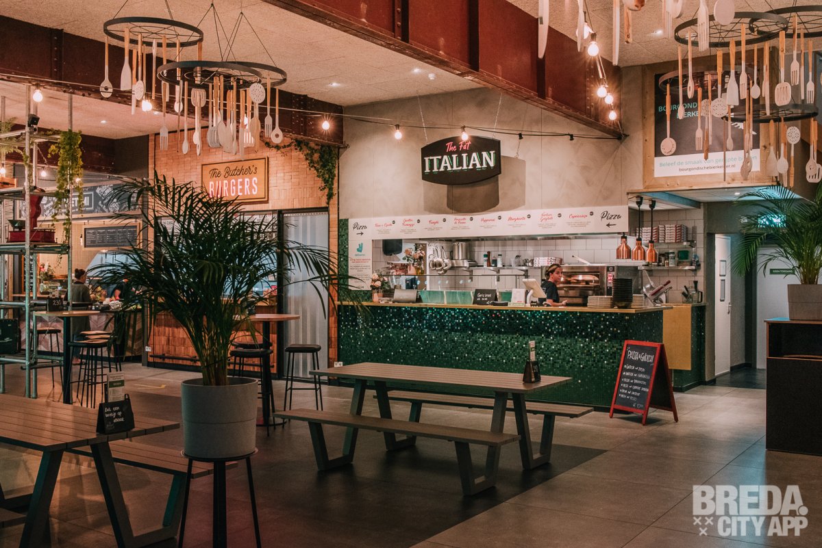 We mogen vanavond weer eens in de Foodhall gaan kijken. Deze parel ligt verborgen in de Reigerstraat in Breda en bevindt zich in het oude Casino Cinema bioscooppand. Het imposante gebouw nodigt uit om naar binnen te gaan op deze druilerige woensdagavond. We worden welkom geheten en vervolgen onze weg naar binnen. De foodhall heeft een groot aanbod van verschillende keukens van pokébowls tot bitterballen en burgers. Vanavond komen wij speciaal voor de Italiaanse Keuken: The Fat Italian.