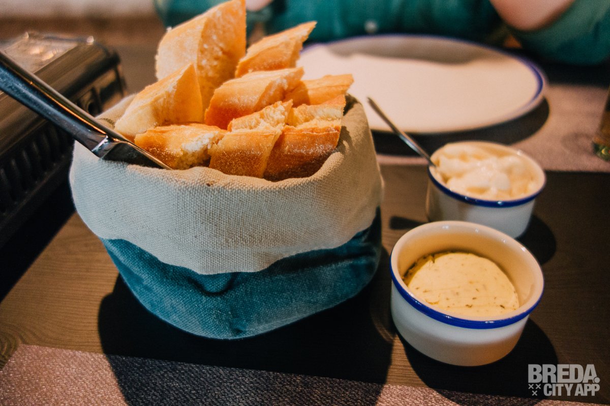 We kiezen een gezellig tafeltje uit in dit mooie familierestaurant. Al snel worden we geholpen door één van de vriendelijke medewerkers die ons een drankje aanbied. Om de avond te beginnen starten we met een mandje stokbrood met kruidenboter en aioli. Het stokbrood is nog lekker warm, een heerlijk begin van deze avond. Dit belooft veel goeds!