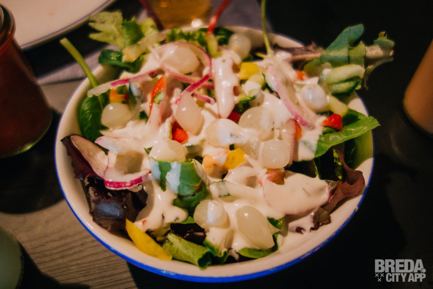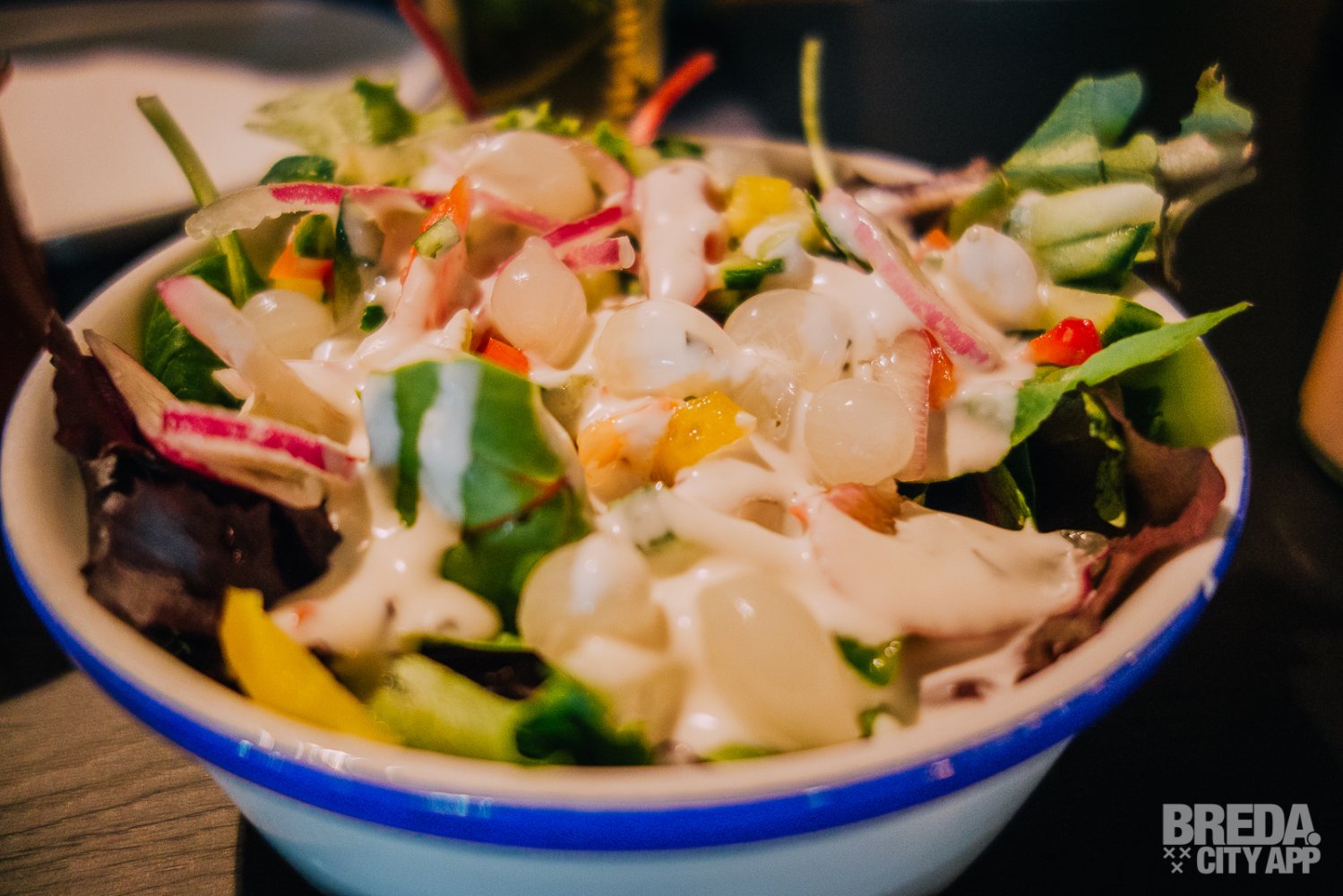 Tijdens het eten hoor je op de achtergrond de geluiden van de bowlingbaan. Hierdoor is het voor ons moeilijk om de verleiding te weerstaan om onze bowlingskilss te testen, maar het is ons toch gelukt.