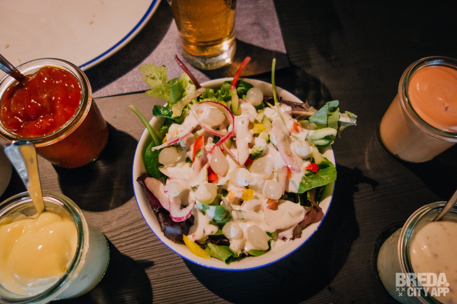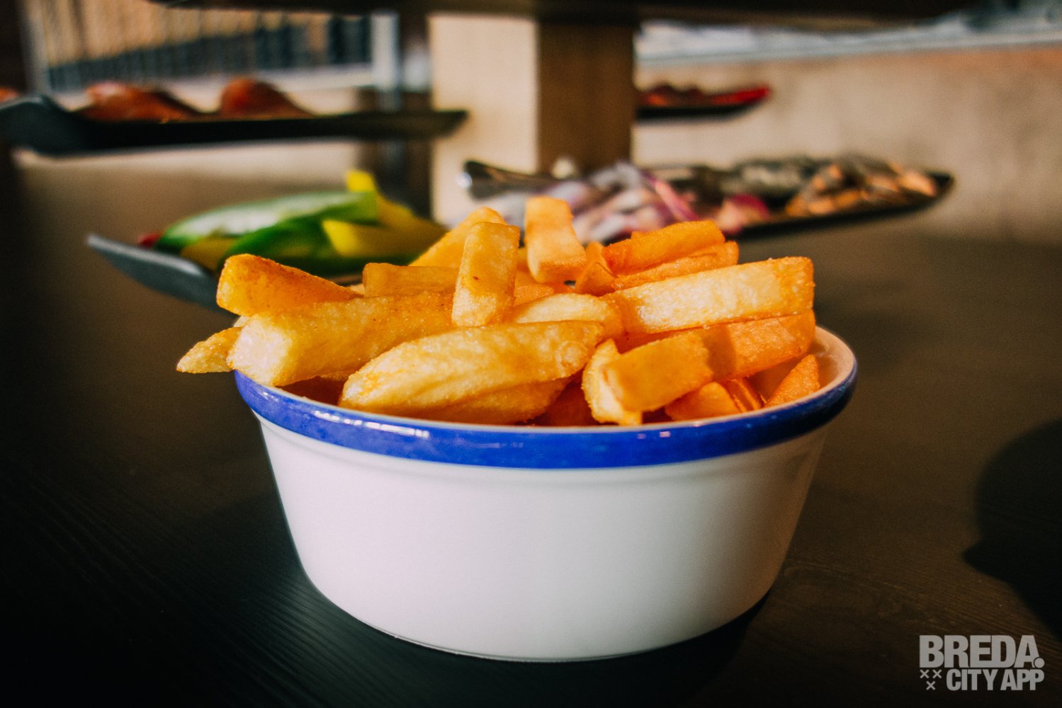 Bij het grillen heb je de mogelijkheid om onbeperkt salade, brood en frietjes bij te bestellen. Voor ons is dit niet nodig, omdat we al meer dan genoeg lekkere dingen op tafel hebben staan. Als bijgerecht krijgen wij gekruide frietjes, een leuke toevoeging in plaats van zout.