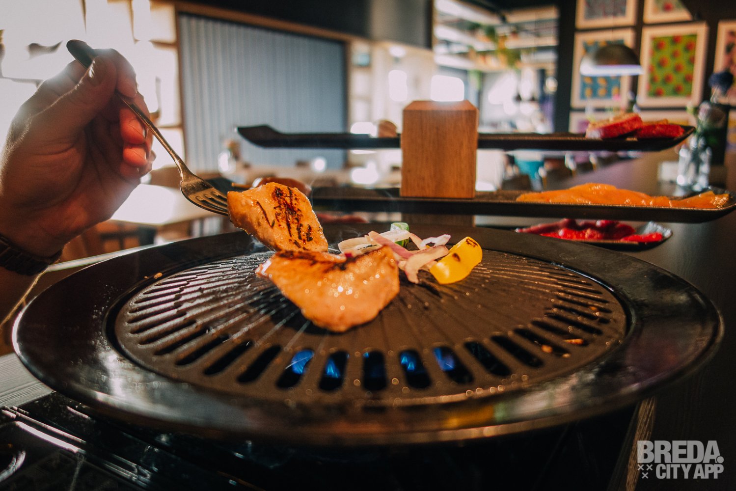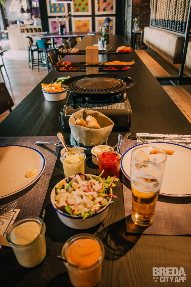 Onlangs werden we uitgenodigd door Vier Hoog Breda om bij restaurant VIER te komen tafelgrillen. Na de beklimming van vier verdiepingen met de trap (er is natuurlijk ook een lift aanwezig), hebben we voldoende ruimte om lekker te gaan eten. We voelen ons gelijk welkom in het gloednieuwe en modern ingerichte restaurant!