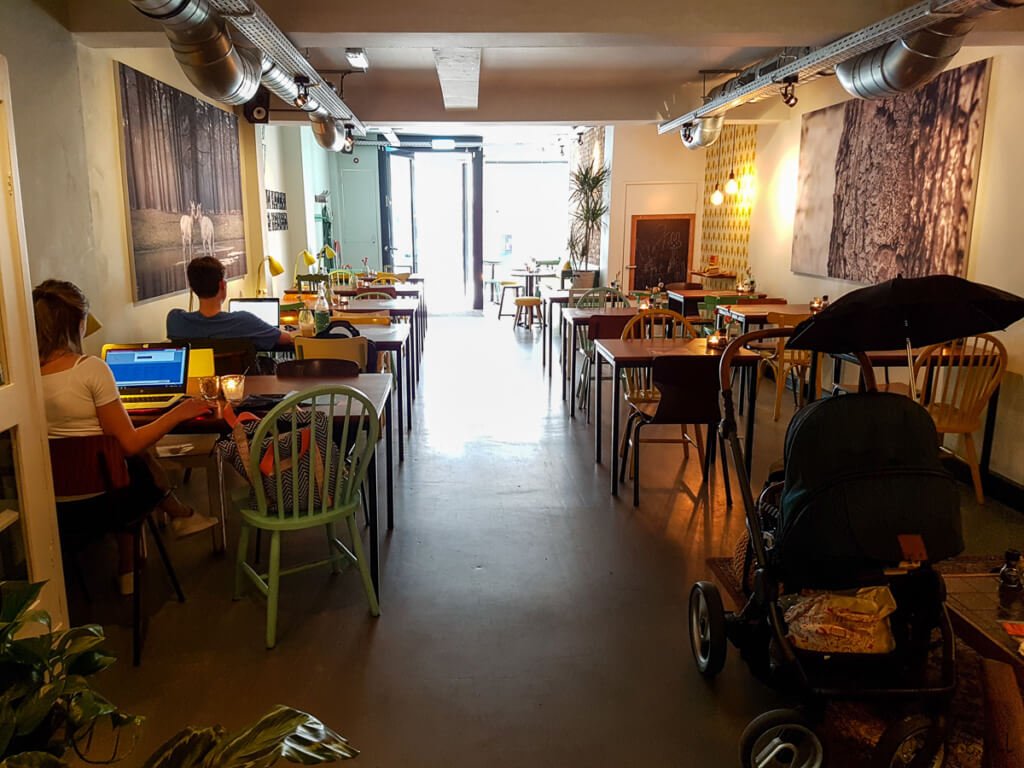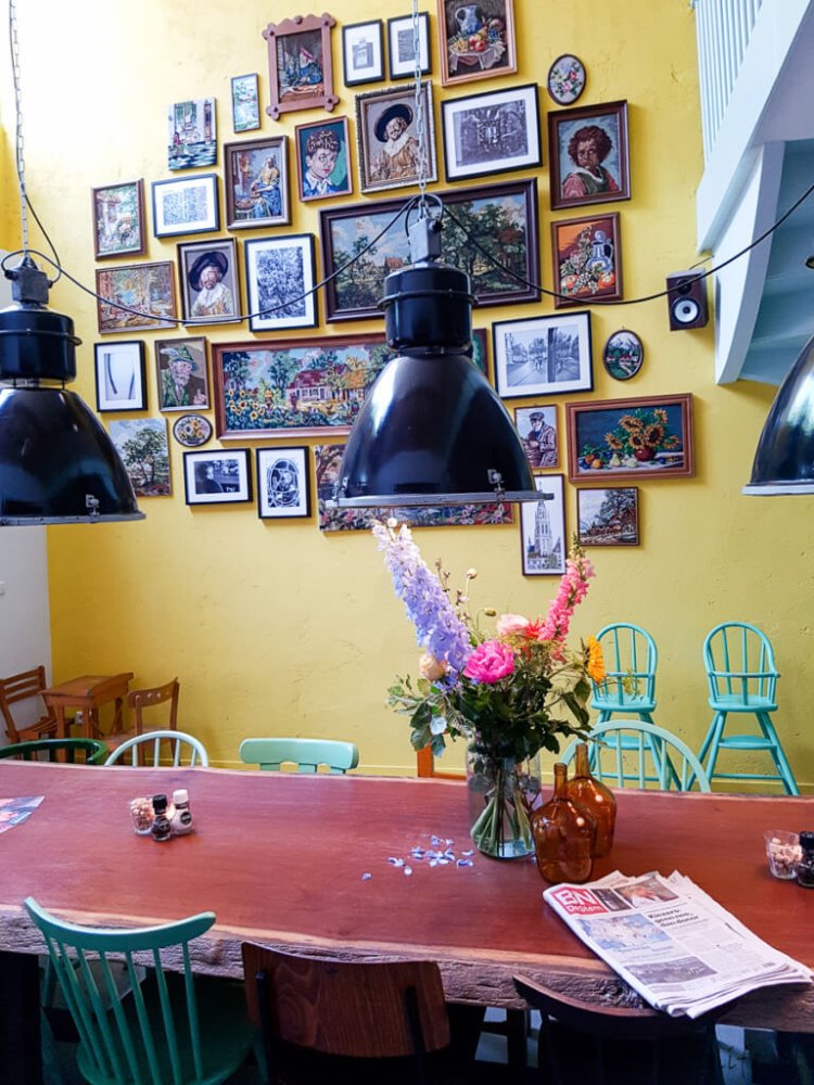 De inrichting van In Kannen en Kruiken is gezellig en huiselijk. Veel verschillende soorten stoelen, bloemetjes, kaarsjes, schilderijen enzovoorts. Ik hou ervan, echt waar. Maar ik zat er net aan te denken dat vele restaurantjes en lunchrooms tegenwoordig zo’n zelfde soort sfeer hebben toen Margo over een artikel begon dat ze laatst had gelezen. Dat ging over 24 dingen die je in hipster cafés tegenkomt. Nou dat dus.