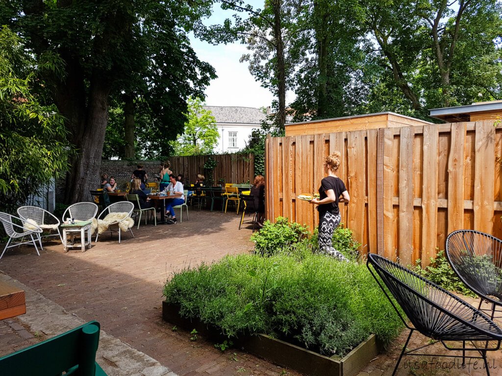 Vorige maand ging ik met vriendin Margo lunchen. We hadden zin in iets gezonds, een salade ofzo en het was heerlijk weer dus we wilden wel ergens buiten zitten. Ik had lunchroom In Kannen en Kruiken in gedachten en gelukkig hebben die een mooie stadstuin waar we lekker buiten konden zitten.