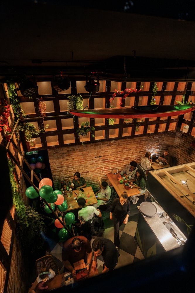 Zodra je binnenstapt bij Wings Paradise waan je je even buiten Nederland. Het interieur ademt een relaxte island vibe, met veel groen, warme houttinten, exotische details en sfeervolle verlichting. De tropische aankleding zorgt voor een ongedwongen, zomerse sfeer waarin je moeiteloos blijft hangen – of je nu komt voor een diner of een gezellige borrel.