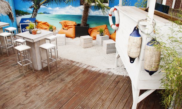Proost opende in 12 juli vorig jaar haar tropische dakterras. Het dakterras in biedt ruimte aan circa 150 personen. Het thema's is overduidelijk; strand!