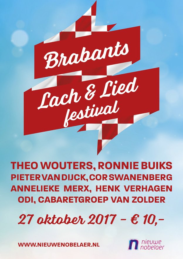 Een avond Brabantse gezelligheid, met diverse optredens van bekende artiesten uit Etten-Leur en omgeving; dat is het Brabantse Lach & Lied festival. Op het podium staan o.a. veelzijdig muzikant Theo Wouters, troubadour Pieter van Dijck, tonprater Ronnie Buiks, Cabaret van Zolder en zangkoor ODI. De avond wordt gepresenteerd en afgesloten door Cor Swanenberg, bekend van o.a. omroep Brabant. Kaarten kosten slechts 10,00 euro incl. hapje en drankje en zijn verkrijgbaar op www.nieuwenobelaer.nl