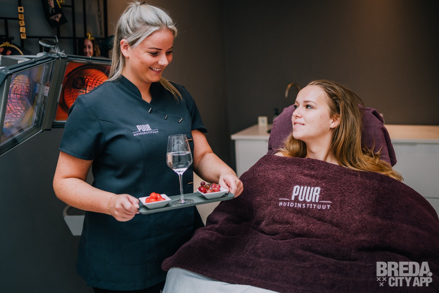 Bij binnenkomst word ik vriendelijk begroet door Marijn en eigenaresse Edith. Edith is zelf in 2007 begonnen met haar schoonheidssalon op zolder daarna is ze uitgebreid naar haar garage en nu is ze gevestigd in het centrum van Prinsenbeek. Binnenkort opent PUUR Huidsintstituut ook hun deuren in Oosterhout. Na een kort gesprek over de komende behandeling en een kop koffie verder, gaan we naar één van de mooie behandelkamers.